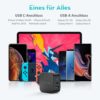 18W Schnellladung: ausgestattet mit USB-C PD-Ladung bis zu 18W Ausgang für einen Anschluss und 15W 5V/3a Ausgang, wenn beide Anschlüsse zusammen verwendet werden.